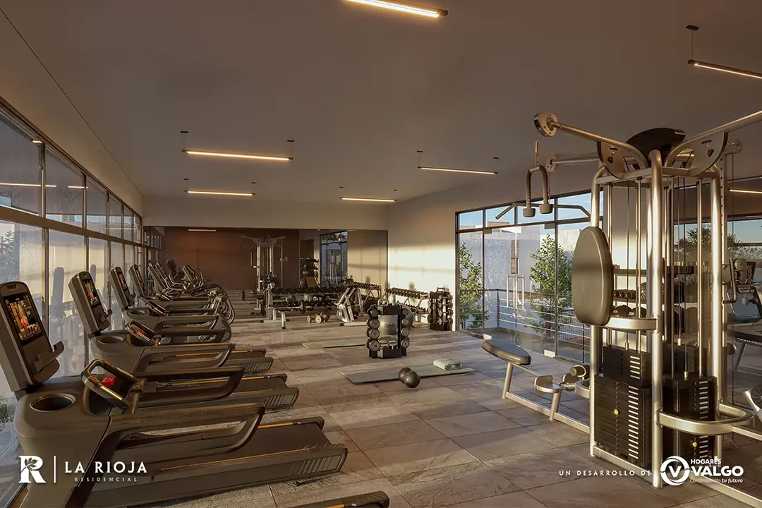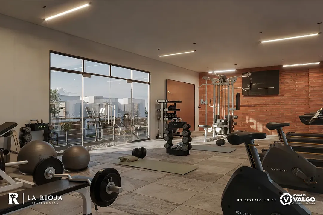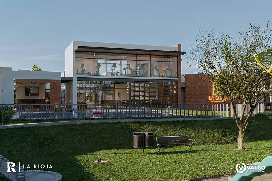 La nueva Casa Club de La Rioja, ofrece un área para que las familias puedan ejercitarse justo al exterior de sus hogares. Equipamiento completo y con vista hacia la alberca y las áreas verdes.